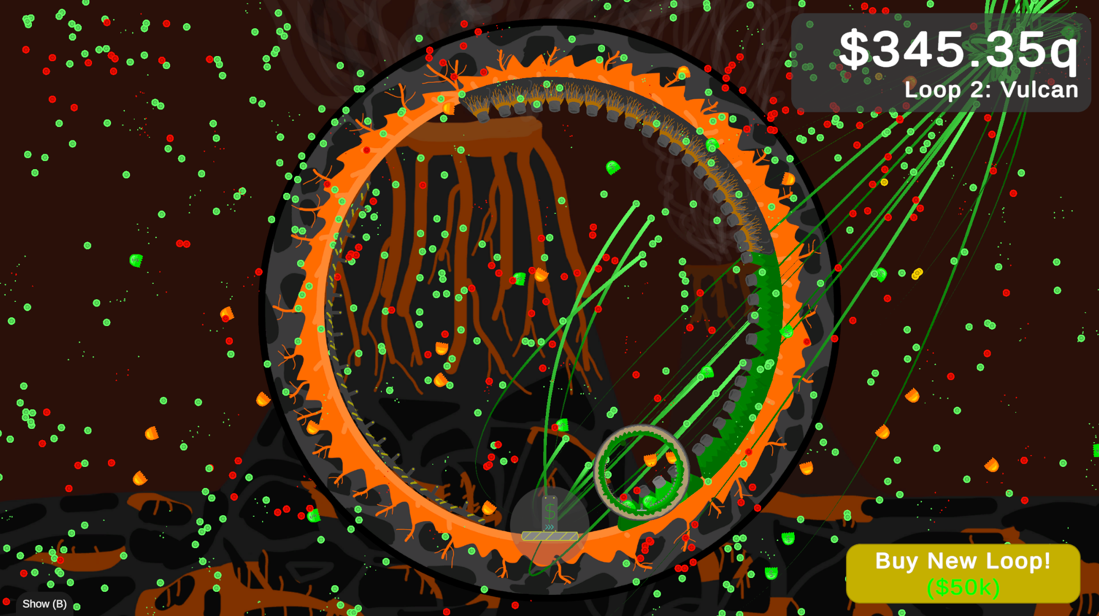Watch a ball roll around in a loop, activating things, and spawning and collecting pellets, whilst using your manual collection tool to collect pellets. You can unlock new loops which give you more money, discover new pellet types, and make your pellets work together to get the highest money output possible.